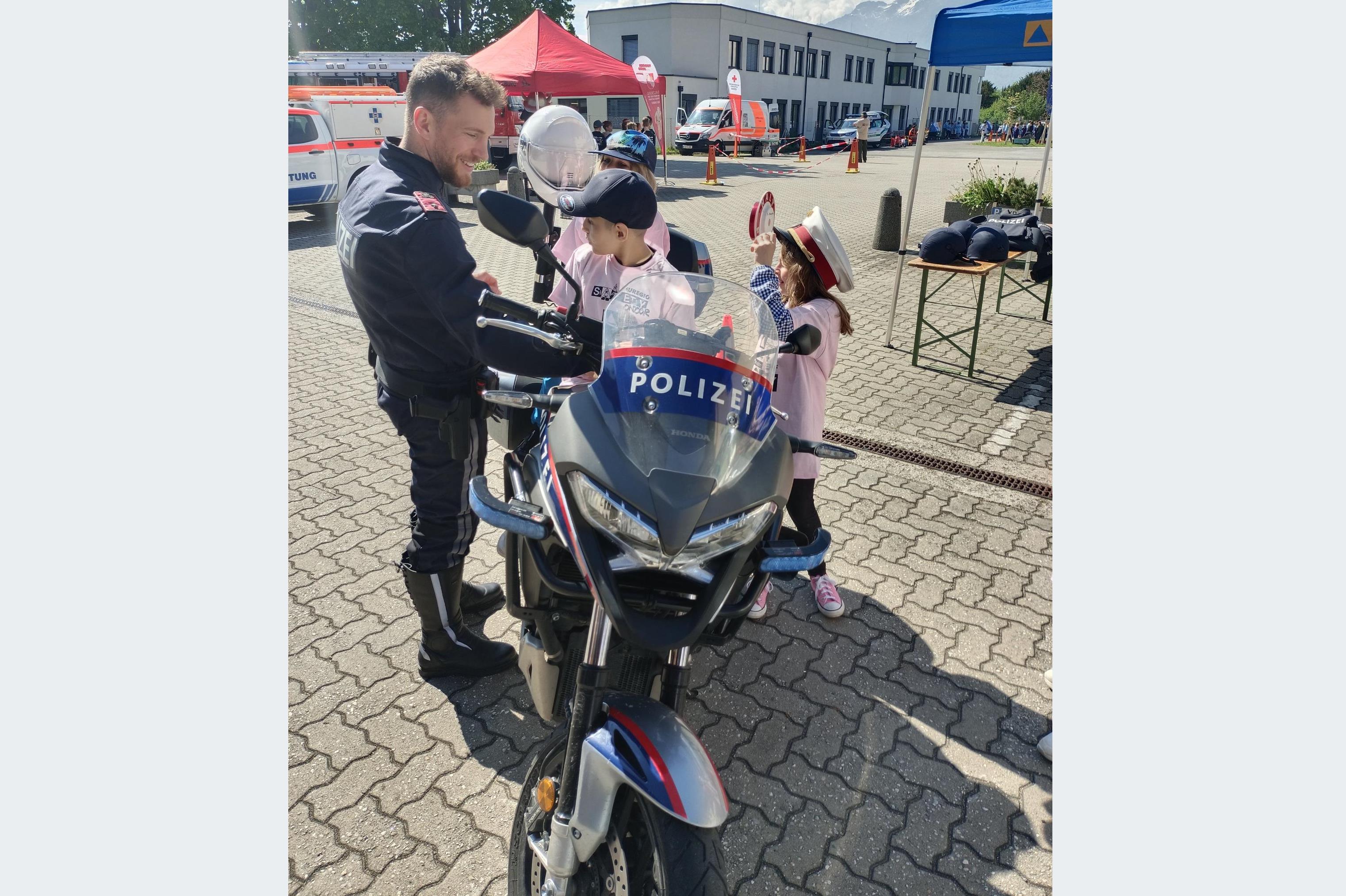 Neben einem Polizeiauto stieß auch ein Polizei-Motorrad auf reges Interesse.