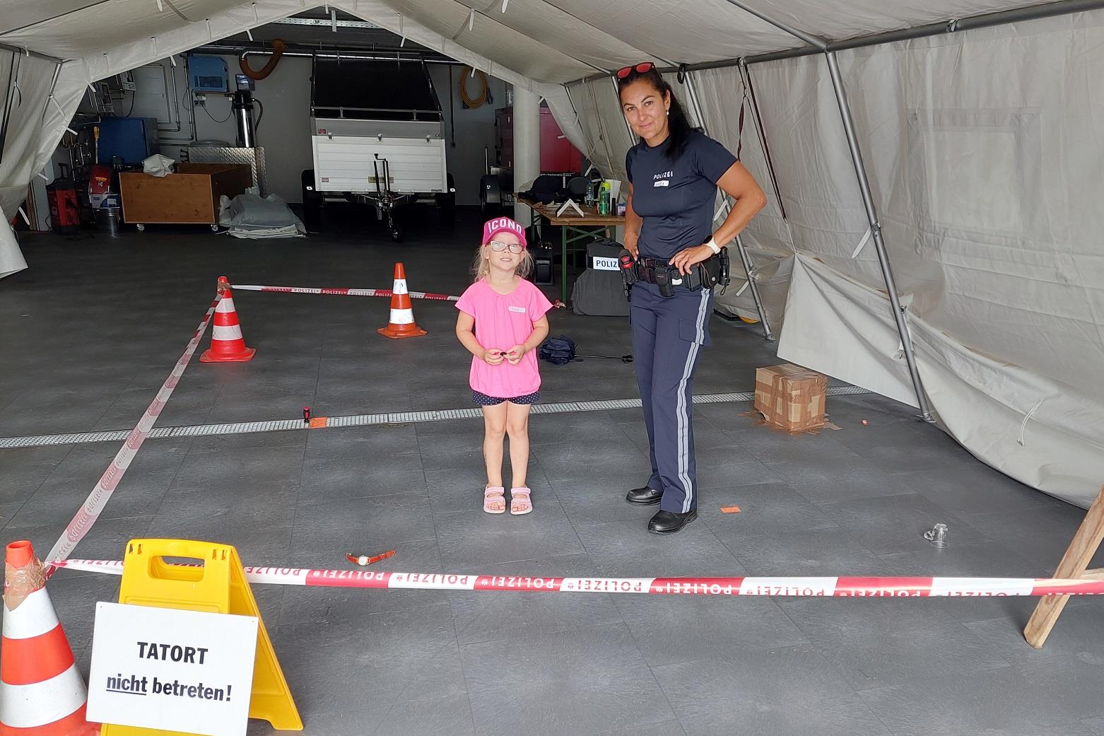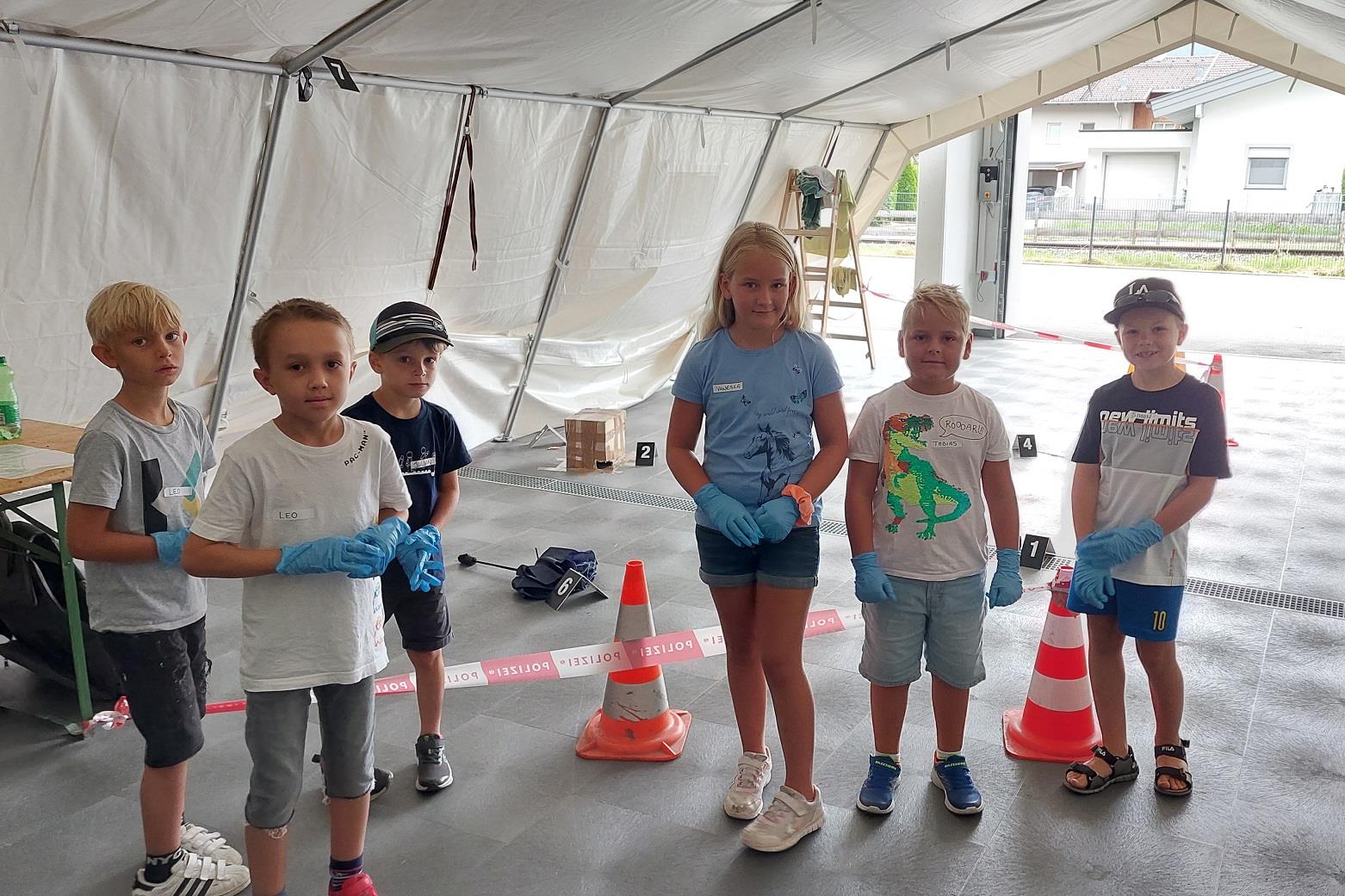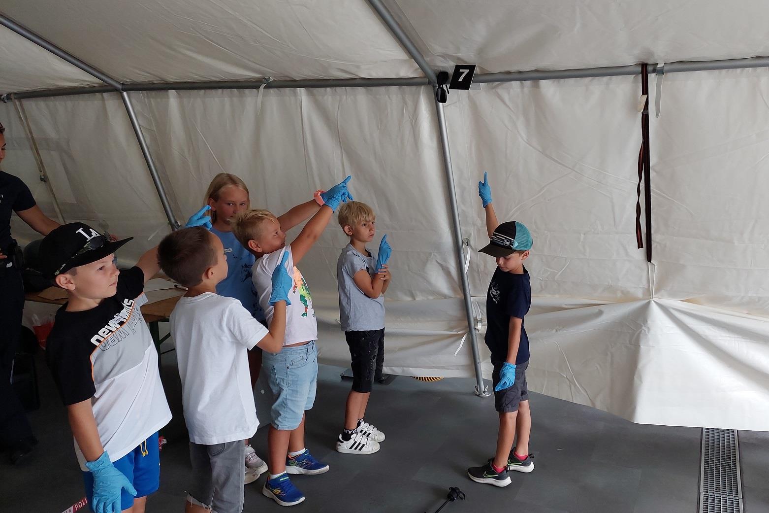 Dort stellten zwei Polizistinnen auch den Polizeiberuf vor. Nach einer Runde mit dem Streifenwagen und der praktischen Erprobung von Schutzweste, Hand- und Fußfesseln, sicherten die Kinder ein Glas mit Fingerabdrücken und wurden am Ende für ihre "kriminalistische Leistung" mit einer Urkunde ausgezeichnet.