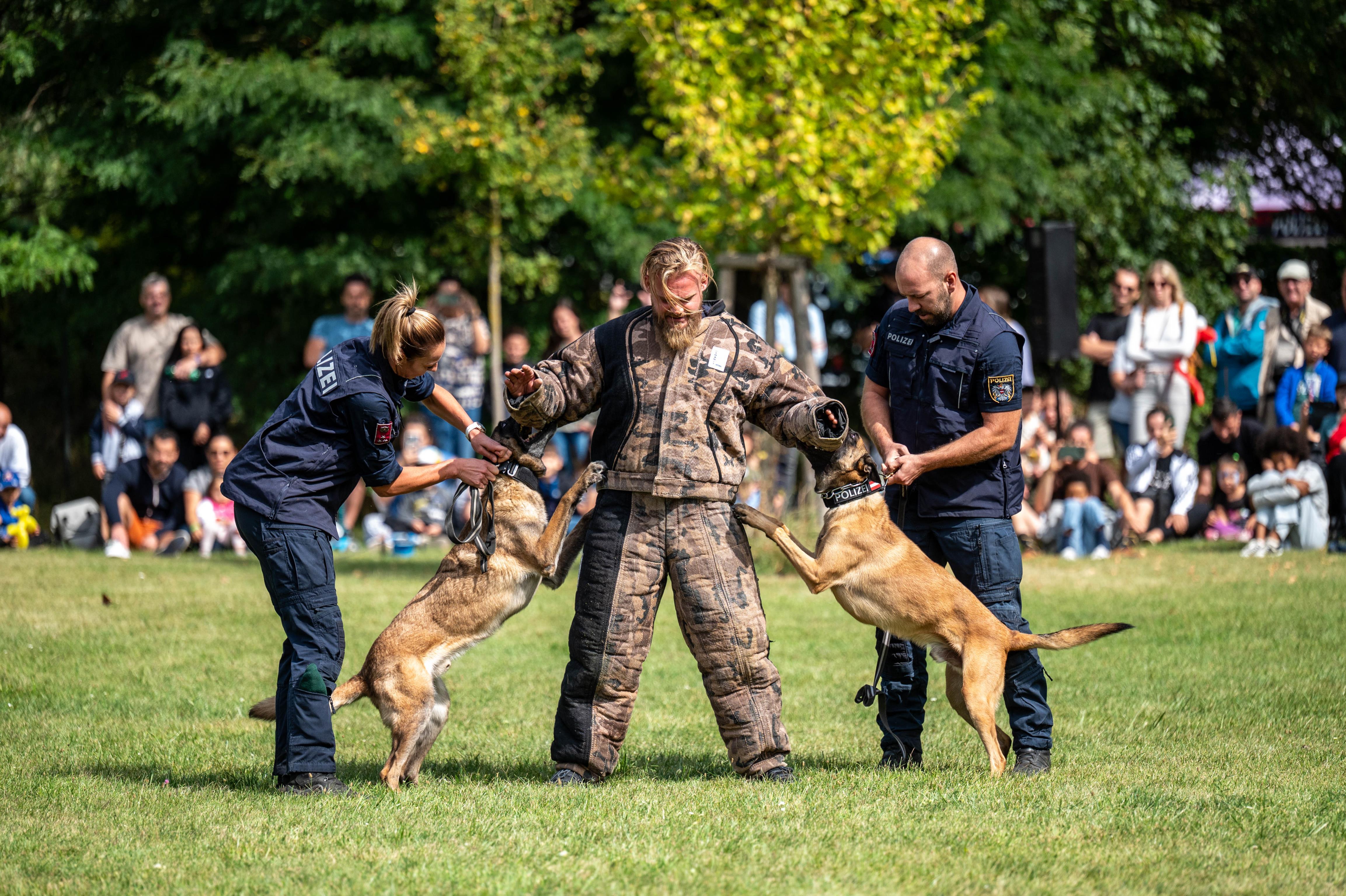 Ob auf Streife oder bei der Suche – Polizisten und ihre Hunde sind ein echtes Team. Und das haben unsere Helden letzten Samstag wieder unter Beweis gestellt. Bei spannenden Vorführungen wurde gezeigt, was die Polizeihunde alles draufhaben. So konnten unsere Besucher und Besucherinnen zuschauen, wie einer unserer Suchhunde, etwas Verstecktes in einem Auto erschnüffelt und angezeigt hat. Der zweite Hund war ein sogenannter Schutzhund. Dieser Hund passt also auf Personen auf, damit ihnen nichts passiert. In der Fotogalerie kannst du dir ein paar Einblicke dazu verschaffen.