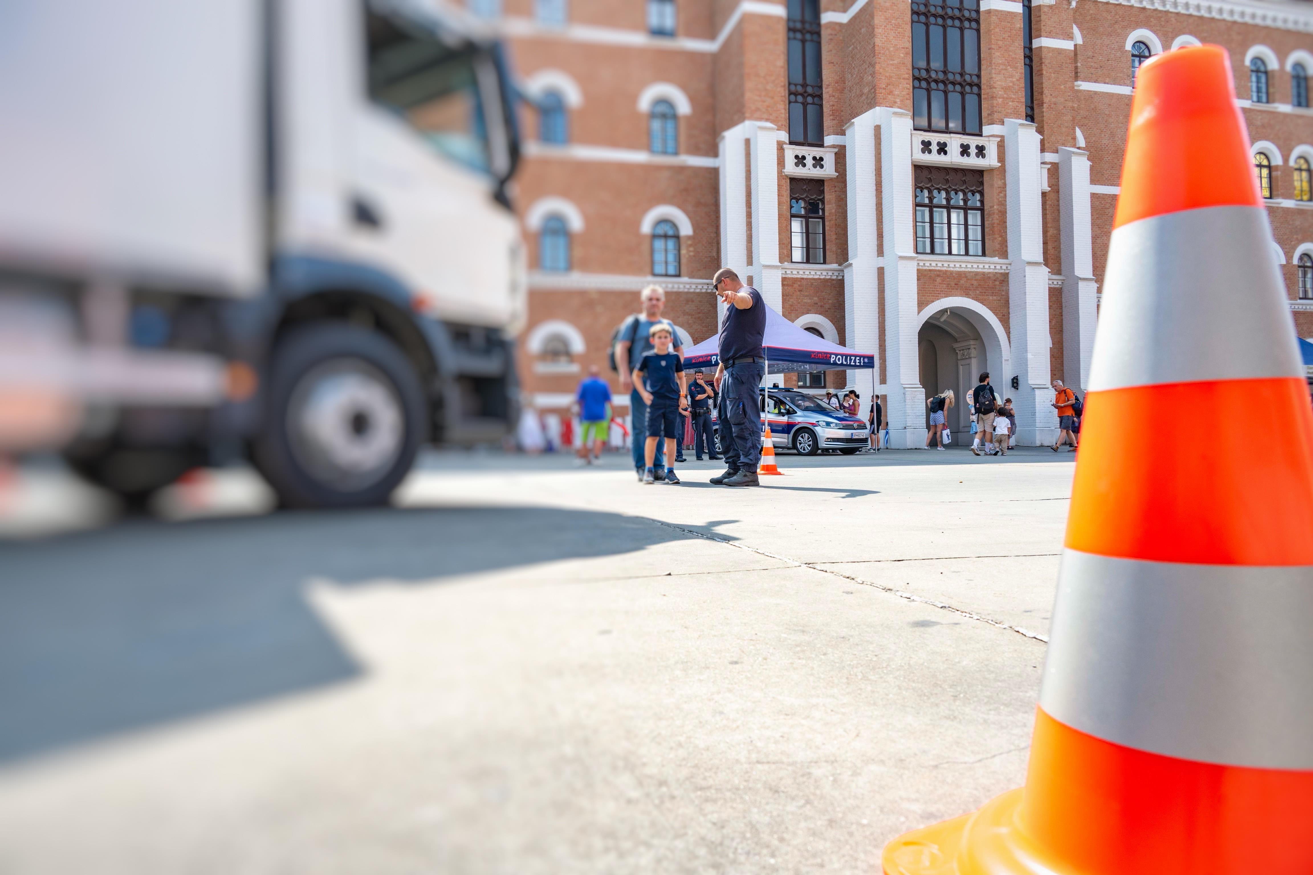 Neben der WEGA war aber auch eine andere Sonderabteilung der Polizei vor Ort. Ein besonderes Highlight war das Polizeimotorrad der Landesverkehrsabteilung. Die Kinder durften es nicht nur aus der Nähe bestaunen, sondern sogar selbst Platz nehmen! Ganz groß bestaunt wurde auch der LKW, bei dem sich die Kinder ebenso einmal wie ein echter LKW-Fahrer bzw. eine echte LKW-Fahrerin fühlen konnten und hinter dem Lenkrad Platz nehmen durften. Dabei war der tote Winkel ein besonders wichtiges Thema. Hast du schon mal vom toten Winkel gehört? Dann weißt du bestimmt, wie wichtig es ist sich damit auszukennen. Und du weißt sicher auch worauf du achten musst, um sicher die Straße überqueren zu können.