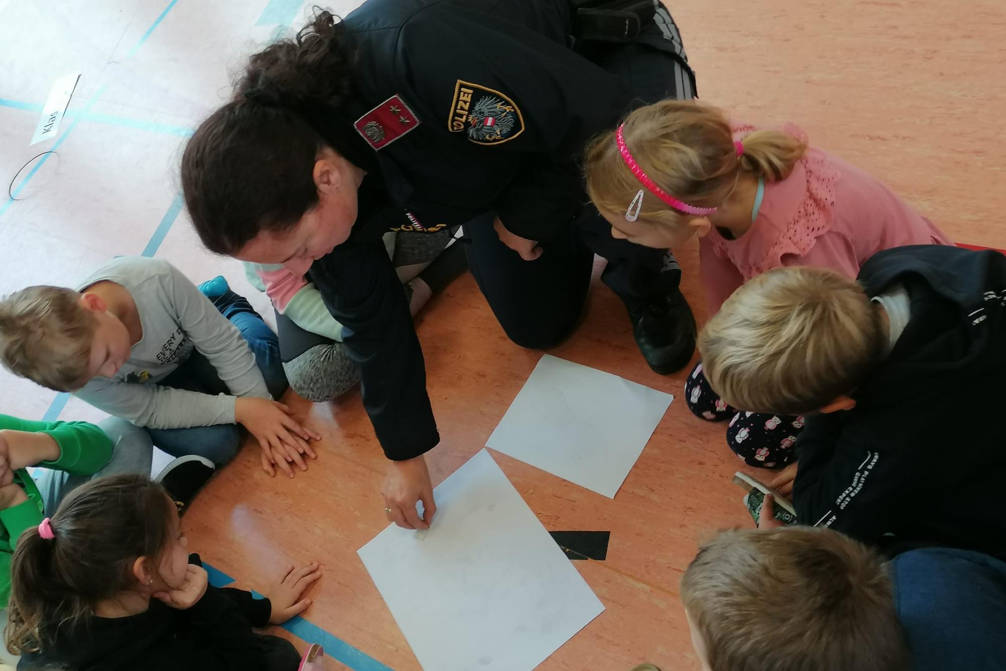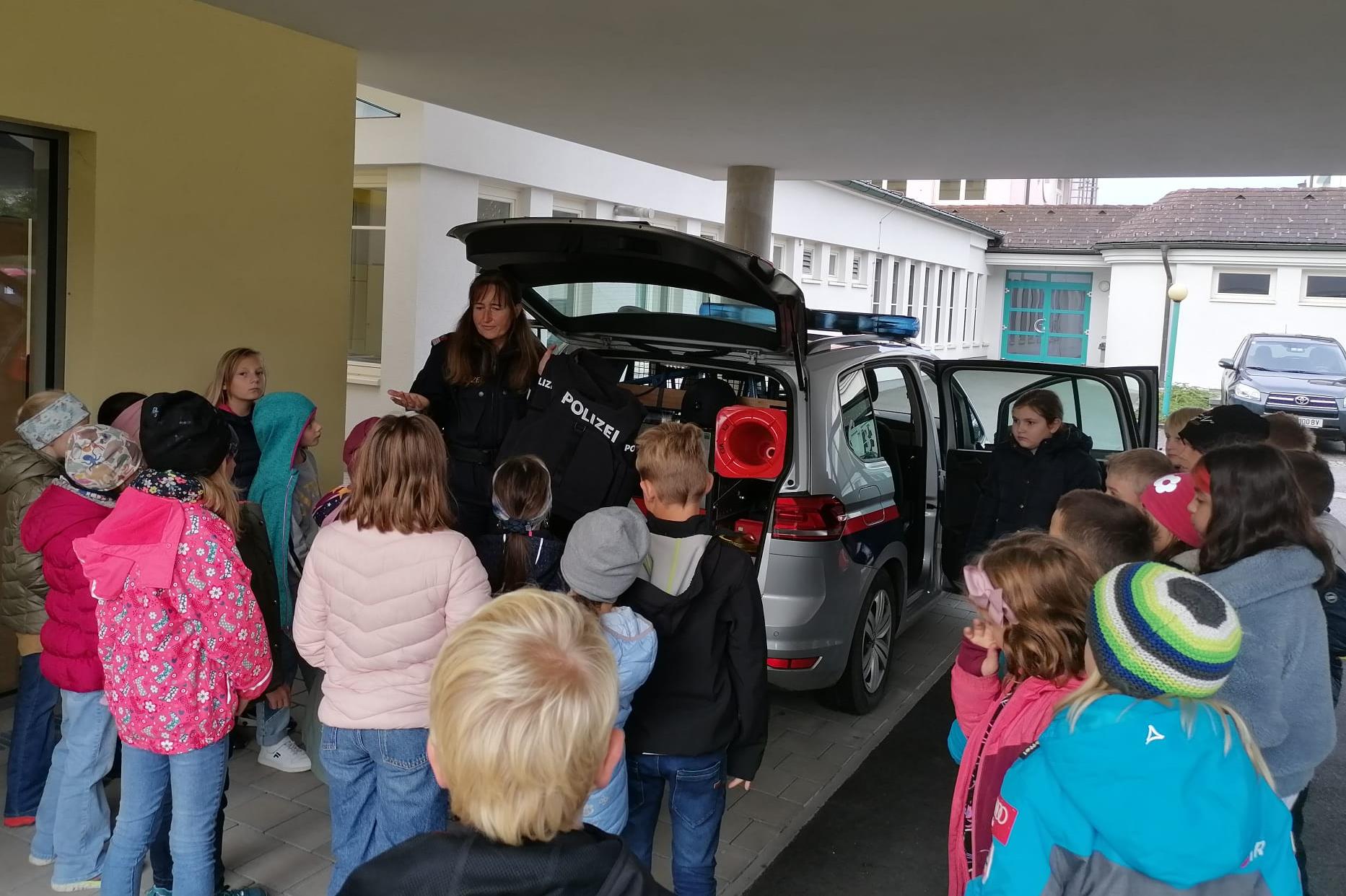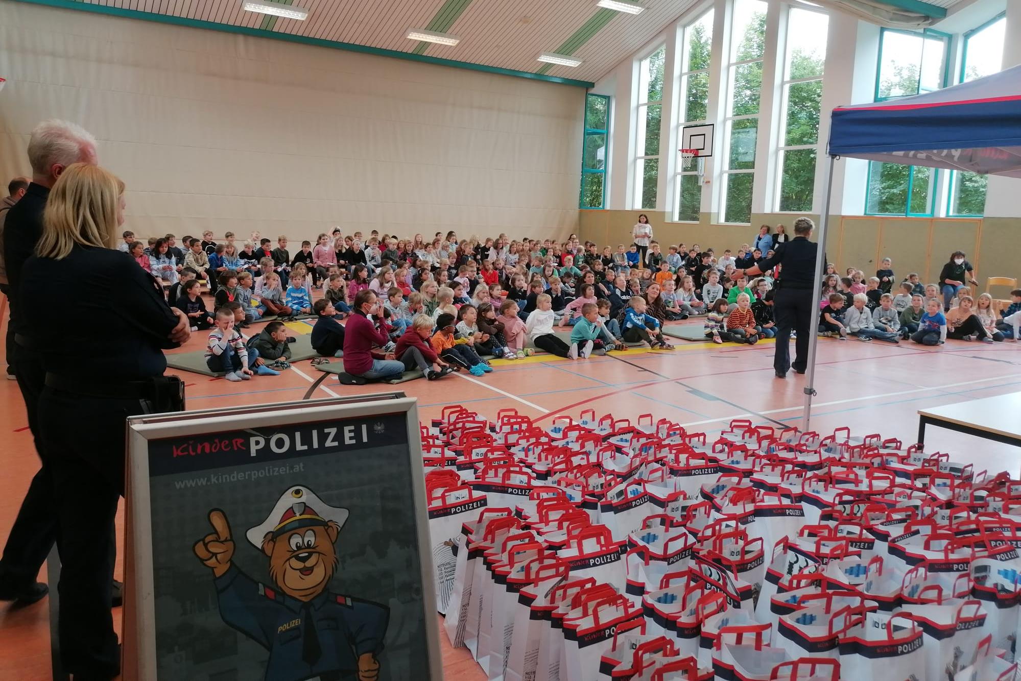 Das Team der Kinderpolizei besuchte am 30. September 2022 die Schülerinnen und Schüler der Volksschule Regau.