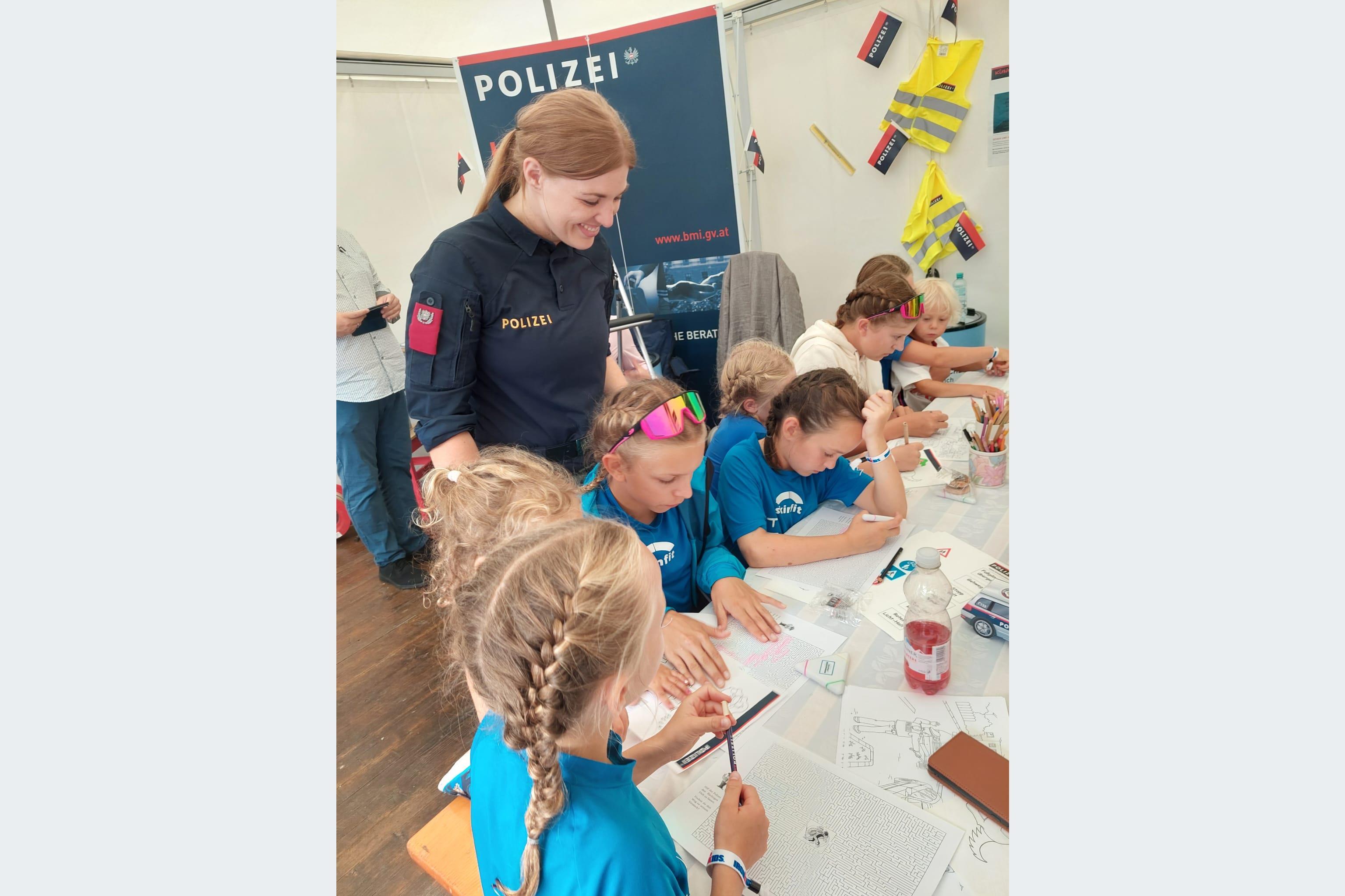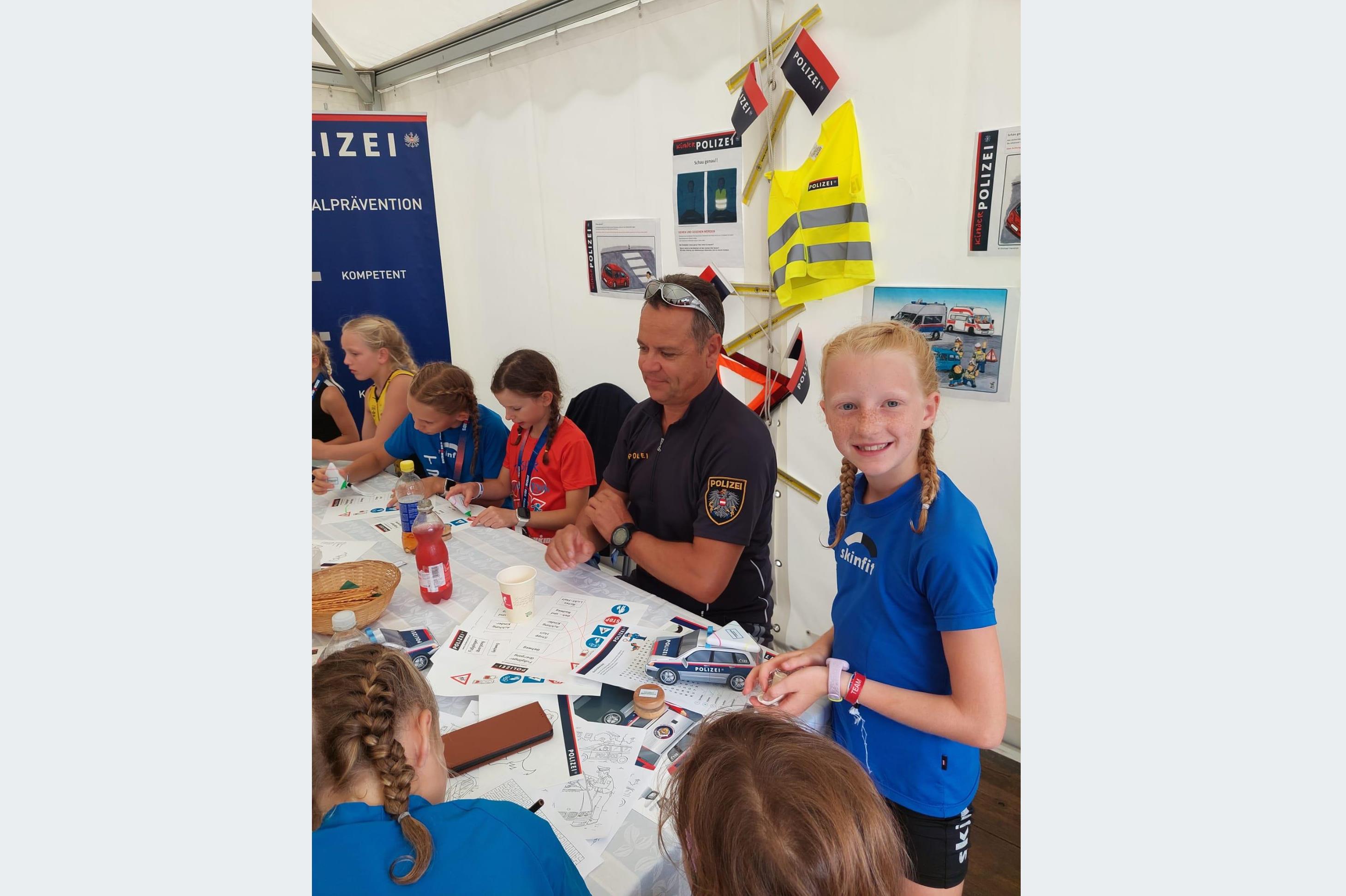 Auch Besucher, die wichtige Sicherheitsfragen hatten, erfuhren alles zu Gemeinsam.Sicher. Und die kleinsten Besucher nahmen am Kipo-Stand Platz, wo sie ein Polizeiauto bastelten oder den Tommy-Bären malen konnten. Ganz interessiert zeigte sich der Nachwuchs des Triathlon-Vereins Zell am See, der sich von den drei Polizisten Marion, Patrizia und Wolfgang Tipps von der Kinderpolizei holte.