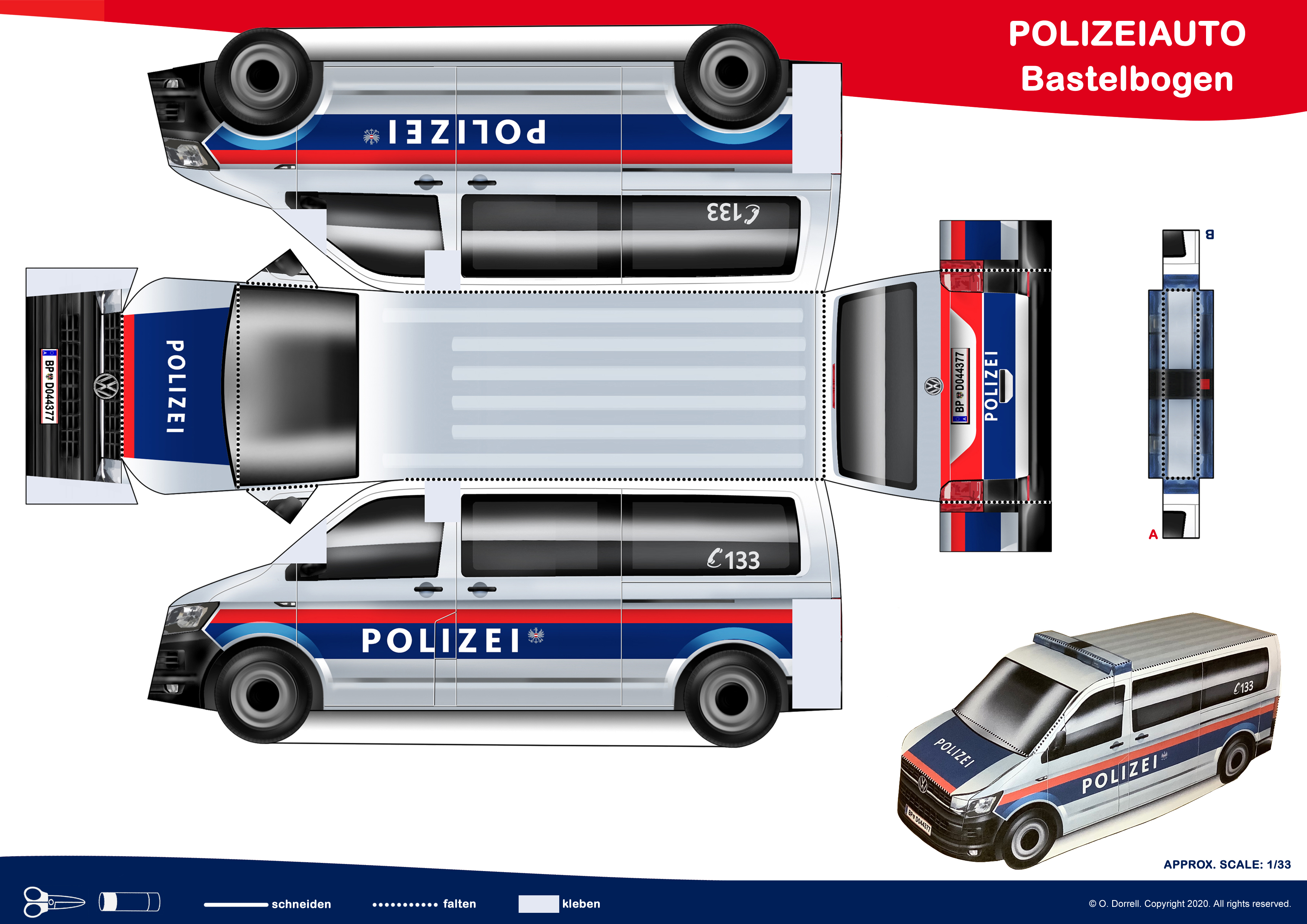 Bastelspiel Polizeiauto zum Herunterladen: